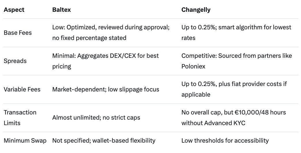 Baltex's fee structure favors users seeking minimal overhead in volatile markets, with aggregation reducing spreads effectively. Changelly's flat 0.25% cap provides predictability, though KYC can introduce delays for larger swaps. These elements ensure both platforms suit different trading volumes, but always review rates in-app for real-time accuracy.