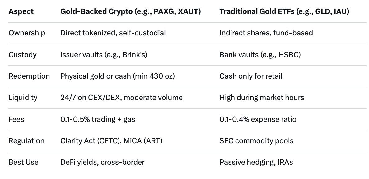 Gold-Backed Crypto vs Traditional Gold ETF: 2026 Comparison