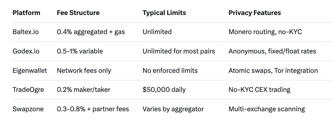 Semi-custodial swappers, like some aggregators, briefly hold funds during conversion but mitigate risks with transparency audits and insurance funds. Centralized options, such as TradeOgre, offer no-KYC trading but require trusting the platform's operations—appealing for simplicity yet riskier amid regulatory pressures that have delisted XMR from many exchanges. Privacy enthusiasts favor decentralized trust models to avoid data collection, ensuring no logs tie swaps to identities.