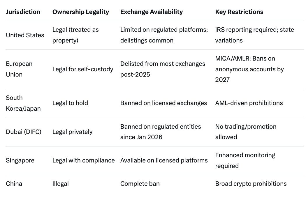 Global Legal Status of Monero in 2025–2026