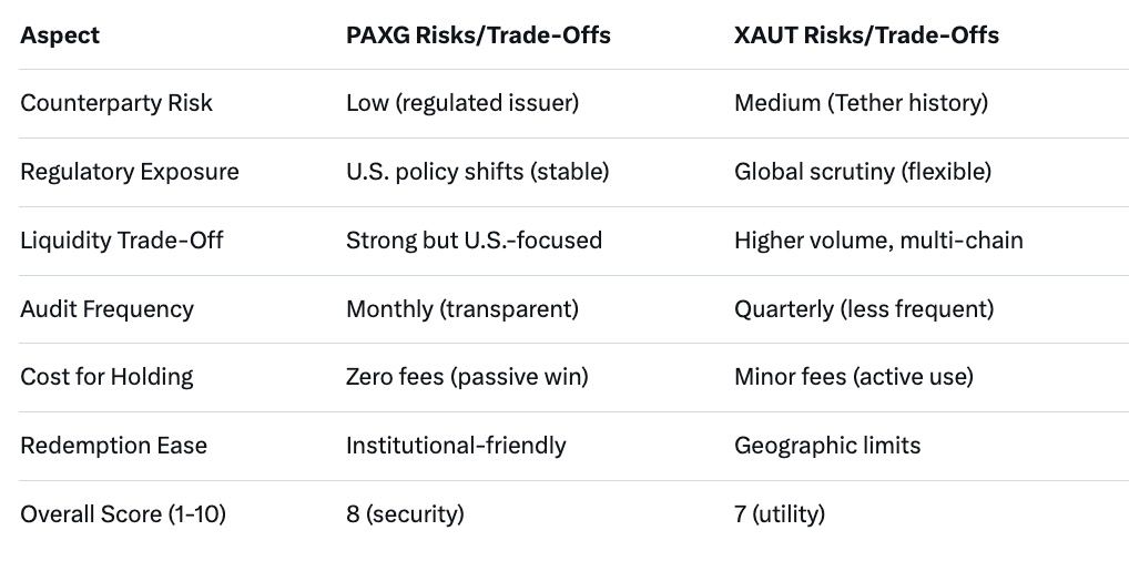 Which is safer from regulatory risks? PAXG, due to U.S. oversight; XAUT has more global flexibility but higher scrutiny potential.