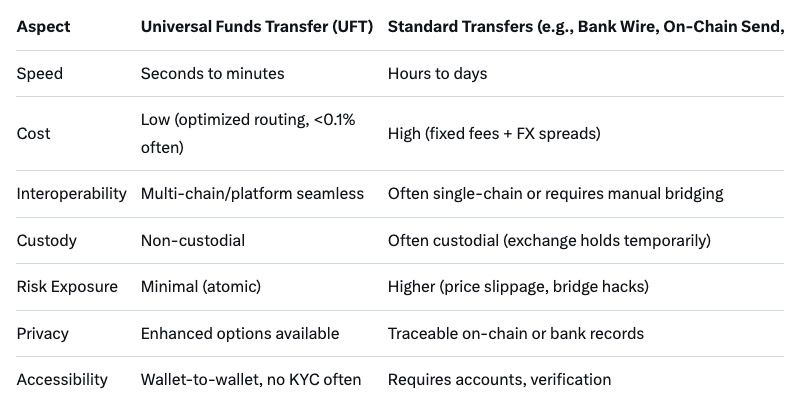 For beginner traders: Think of UFT as the "express lane" for moving money in trading. Instead of slow bank wires or chain-specific bridges, UFT uses smart routing to transfer value universally.