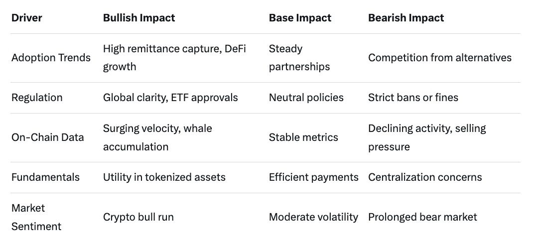 Looking ahead, adoption could accelerate if Ripple's RLUSD stablecoin gains traction, potentially increasing XRP's liquidity role. By 2030, experts anticipate wider use in micropayments and DeFi, especially in emerging markets where remittances exceed $700 billion annually. However, competition from Swift's upgrades and other blockchains like Stellar (XLM) could cap growth. If adoption hits 20-30% of global remittances, XRP's utility demand might push prices higher, but slow enterprise integration remains a hurdle.