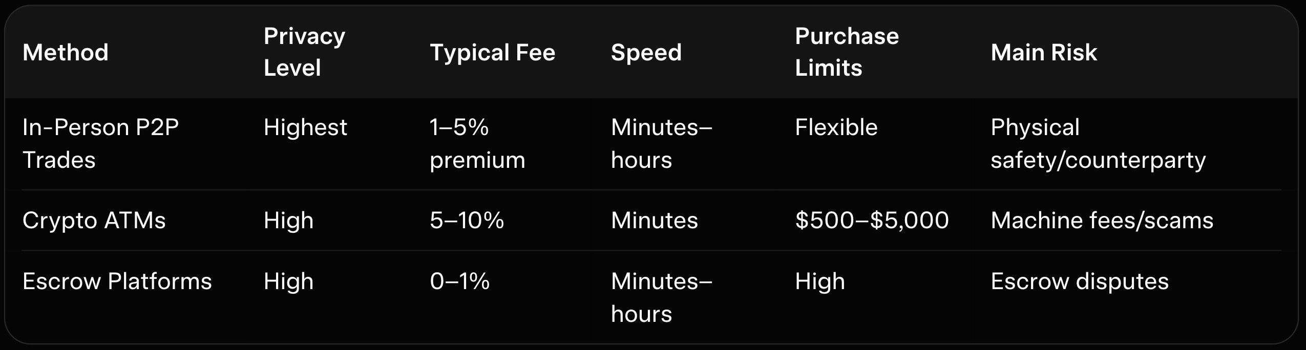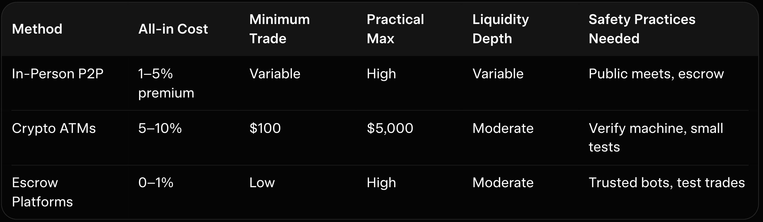Risks include escrow disputes or unreliable sellers, mitigated by using reputable bots and starting small. As explained in our best-p2p-monero-xmr-exchanges-2026, escrow platforms bridge the gap between in-person cash and online speed.