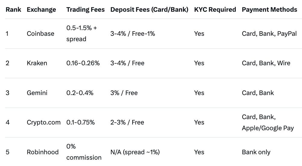 - Fees: Maker/taker models common (0.1-0.5%). Cards add 2-4%; banks near-free. Spreads ~0.5-1%.