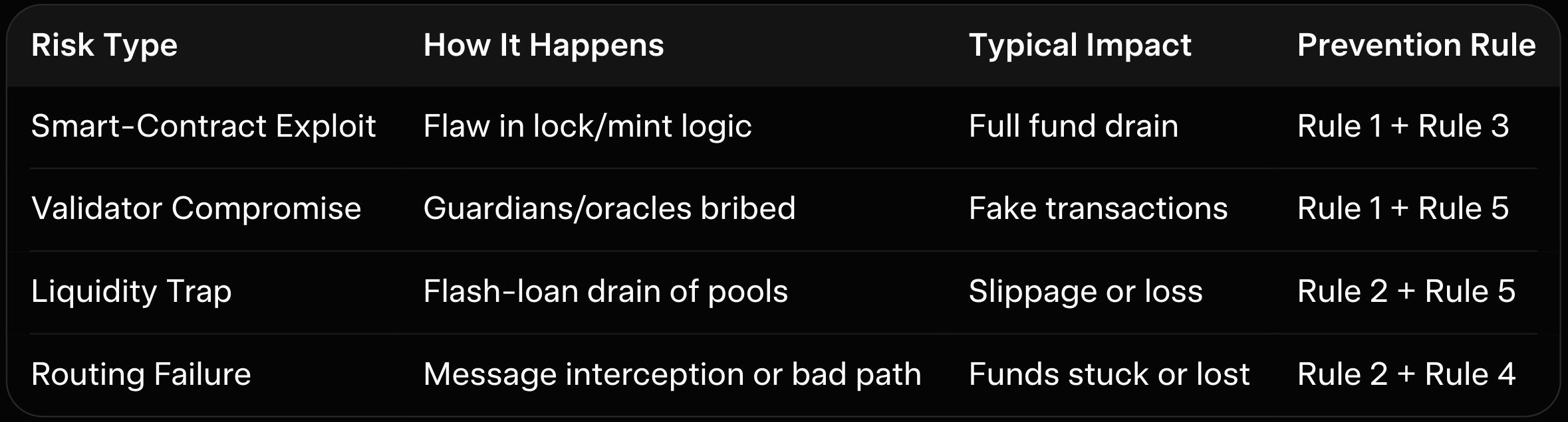Through smart-contract exploits, validator compromises, liquidity drains, and routing failures. The 5 rules above reduce exposure dramatically.