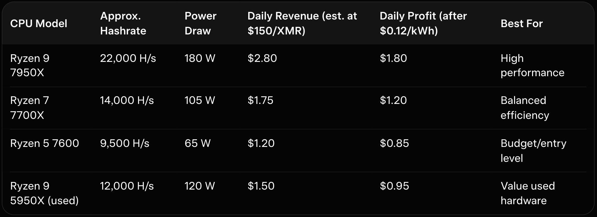 Here is a mining profitability context table (2026 averages at $150 XMR price):